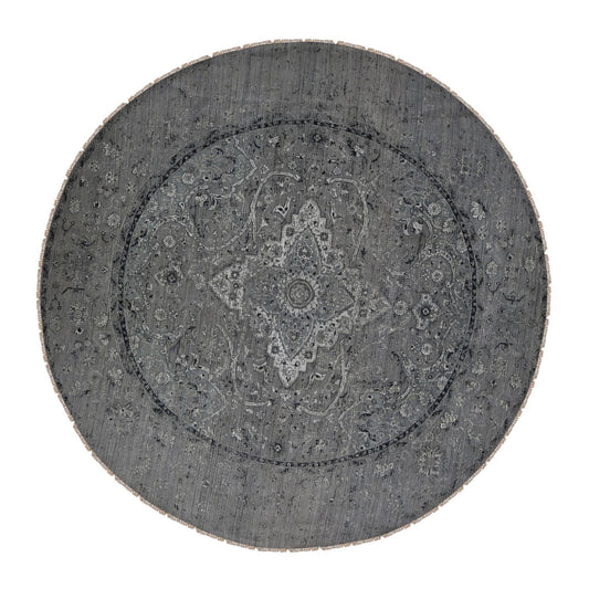Transitional Wool & Silk Hand Knotted Rug Grey No Border 12.0X12.0 -O090808