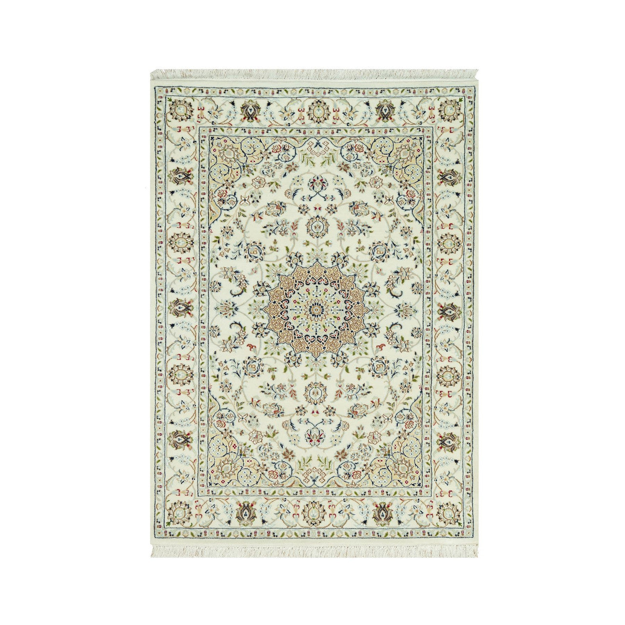 Fine Oriental Wool Hand Knotted Rug Ivory Ivory 4.1X6.2 -O090507
