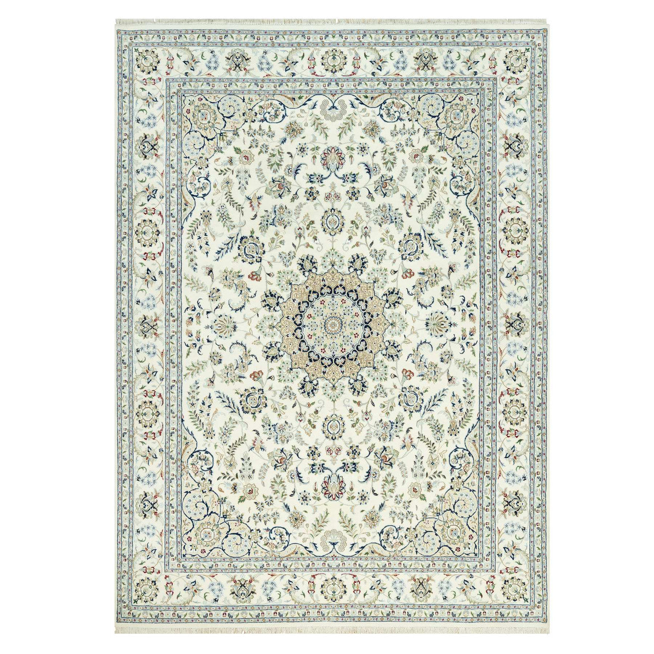 Fine Oriental Wool Hand Knotted Rug Ivory Ivory 8.10X12.3 -O090491