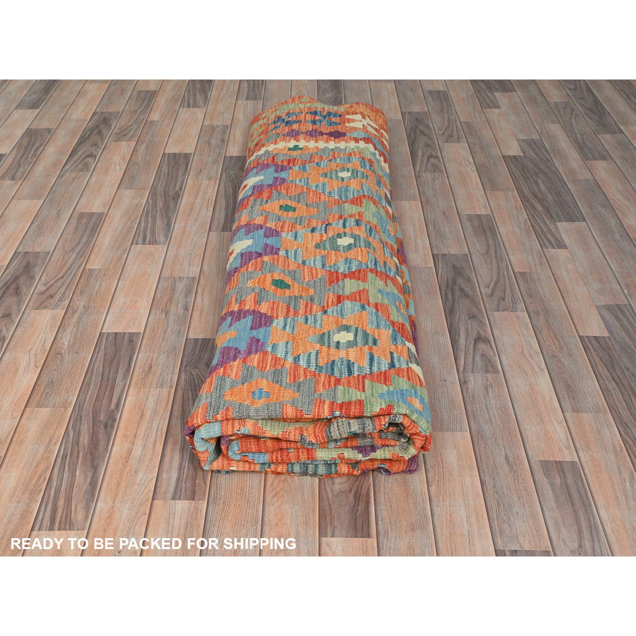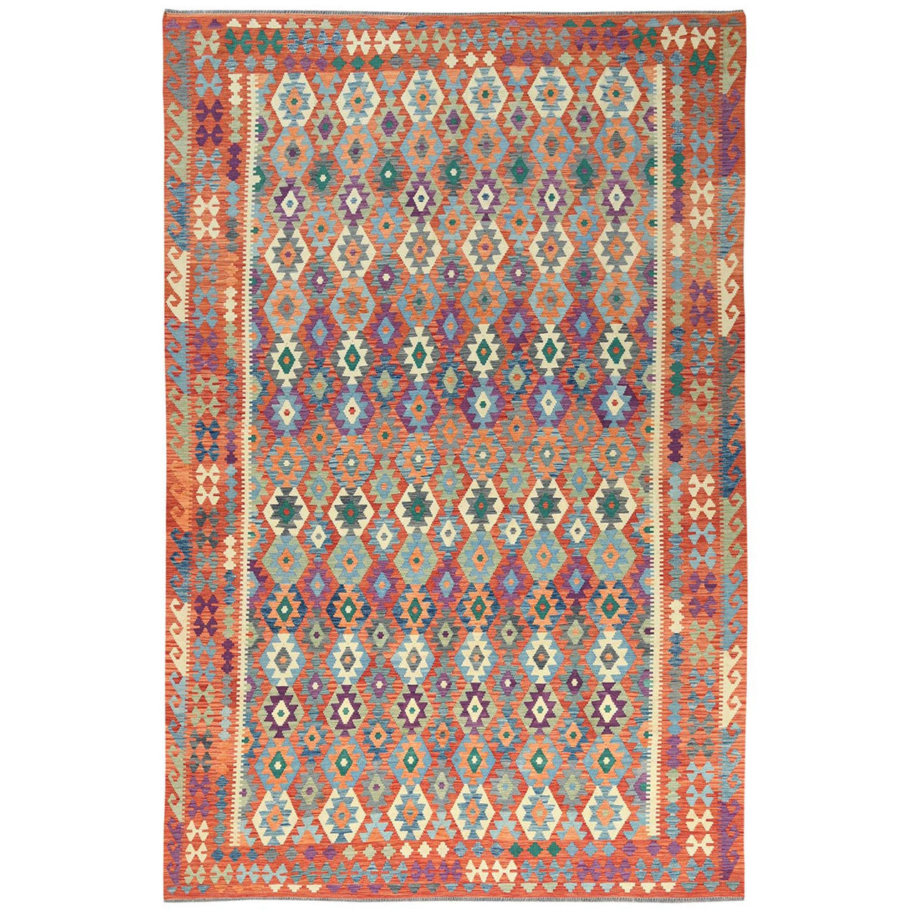 Flat Weave Wool Hand Woven Rug Multicolored Red 10.1X15.10 -O081805