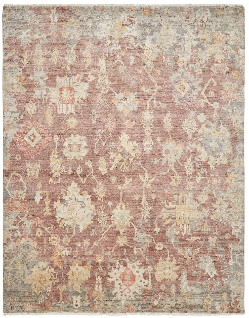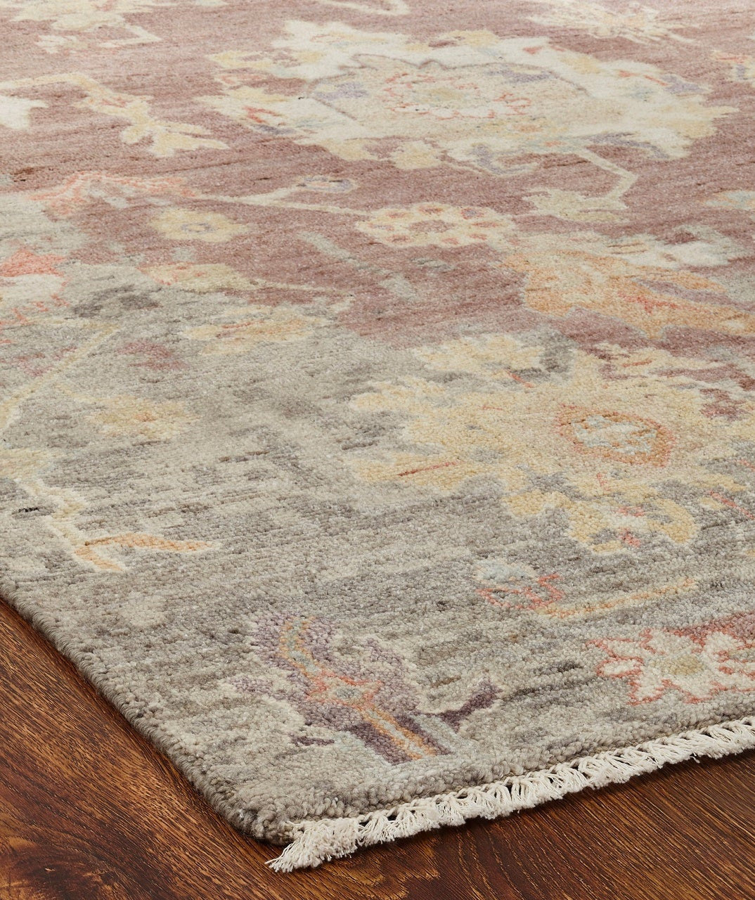 A fashionable modern color palette gives this collection of classic hand-knotted Oushak patterns a stylish update. Meticulously handcrafted using a blend of premium wool and Silkette yarns, these exceptional rugs capture the essence and unique character of a timeless, popular style genre.