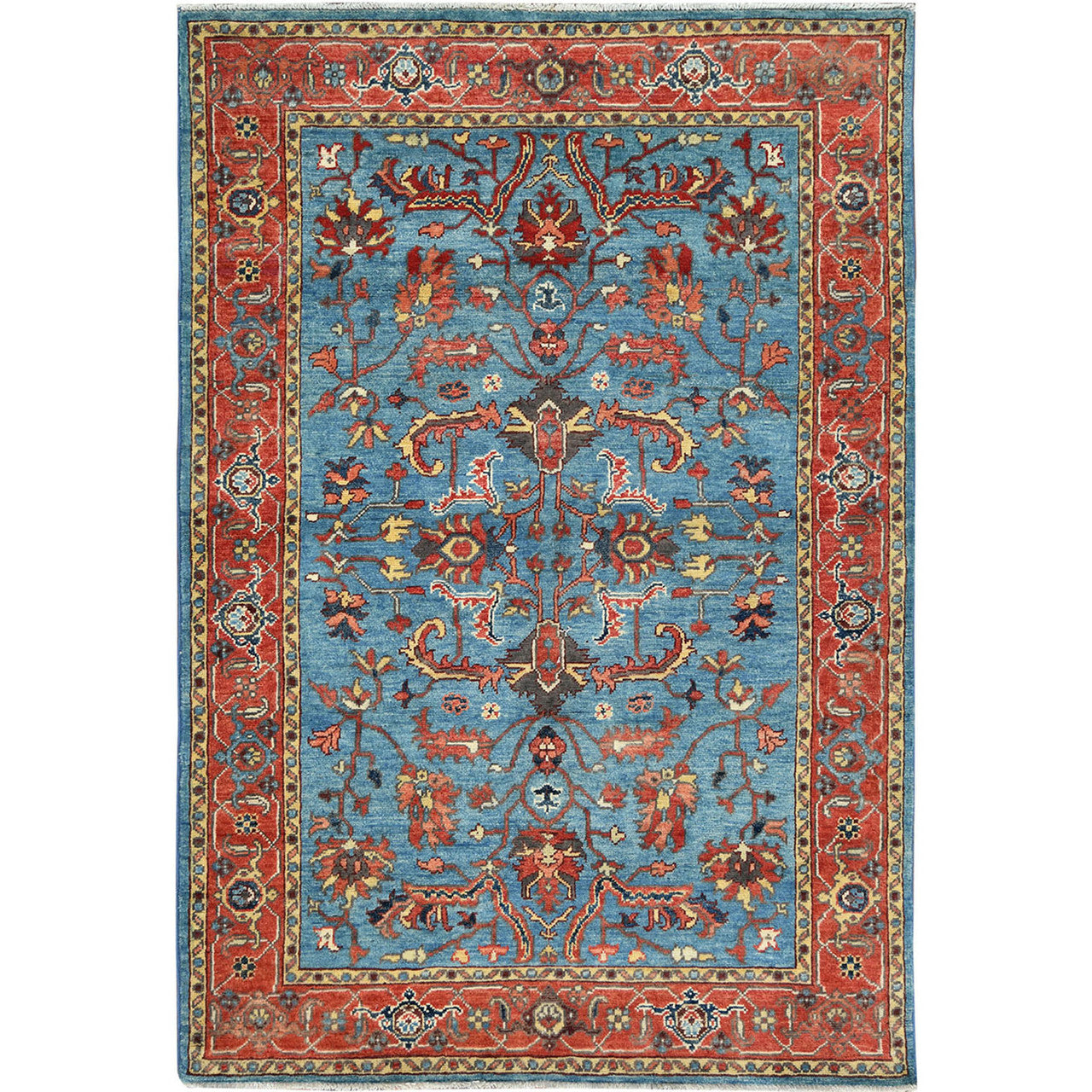 Heriz Wool Hand Knotted Rug Blue Red 4.0X5.9 -O082830