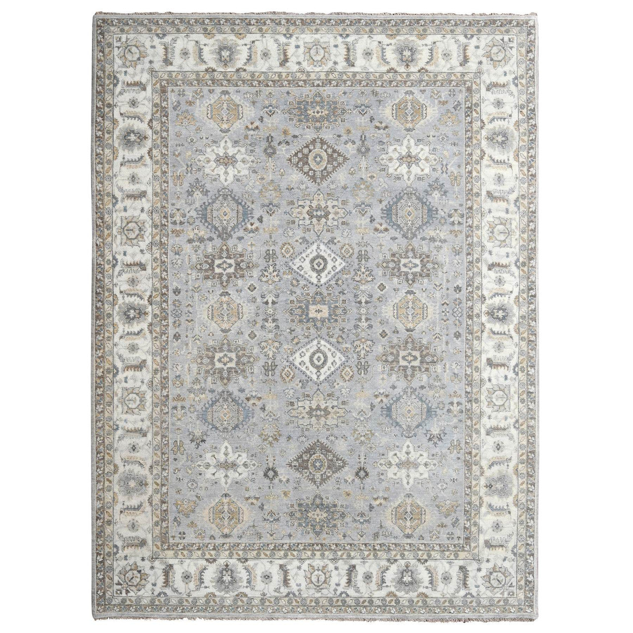 Heriz Wool Hand Knotted Rug Grey White 9.0X12.0 -O010029