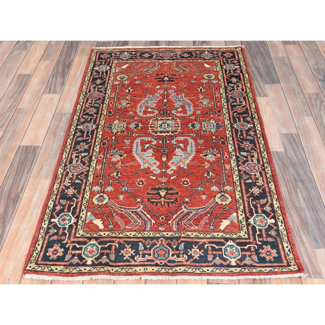 Heriz Wool Hand Knotted Rug Red Black 3.0X4.10 -O082917
