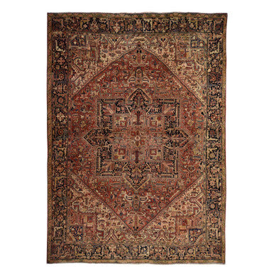 Heriz Wool Hand Knotted Rug Red Midnight Blue 9.6X13.3 -O078307
