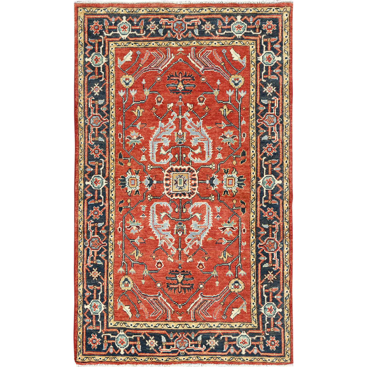Heriz Wool Hand Knotted Rug Red Navy Blue 3.0X4.10 -O082846