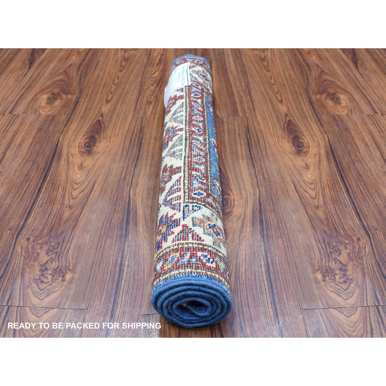 Kazak Wool Hand Knotted Rug Blue Ivory 2.0X3.2 -O068109