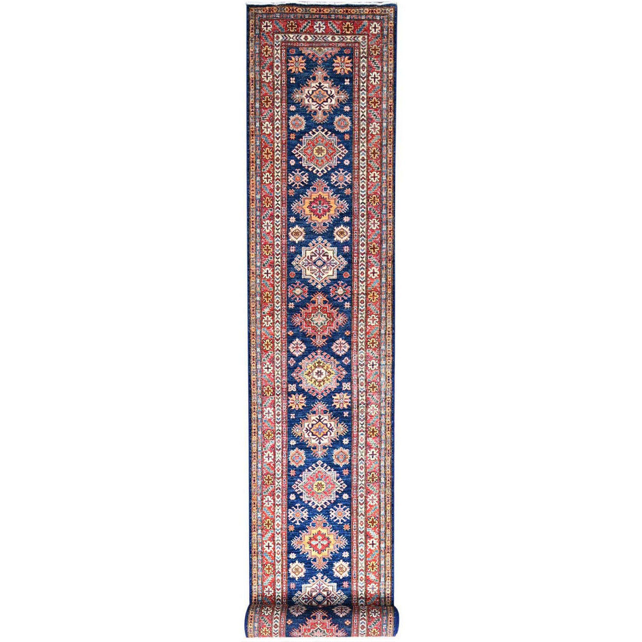 Kazak Wool Hand Knotted Rug Blue Red 2.9X26.3 -O086490