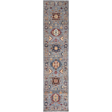 Kazak Wool Hand Knotted Rug Grey Gray 2.7X11.6 -O086911