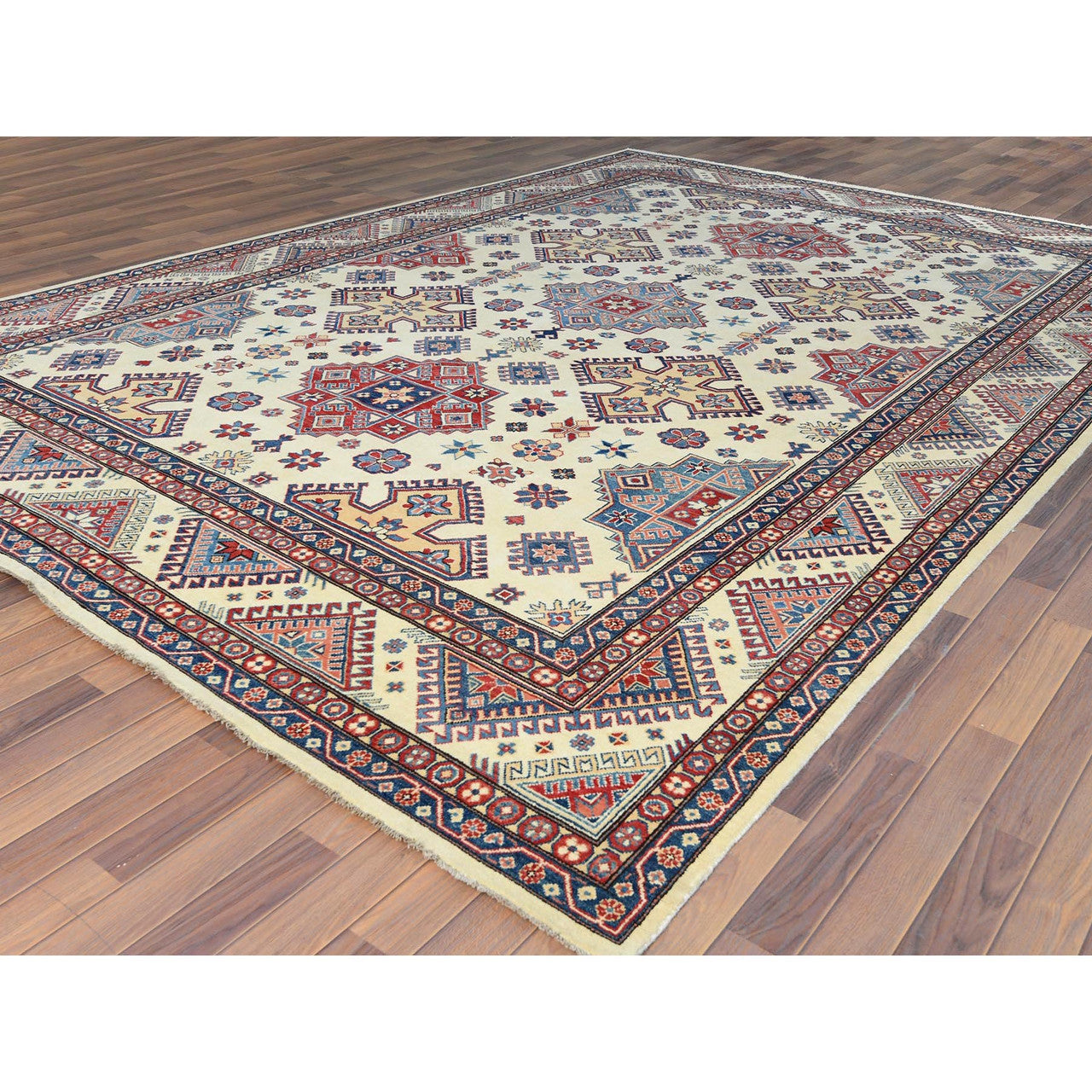 Kazak Wool Hand Knotted Rug Ivory Beige 9.10X13.8 -O061536