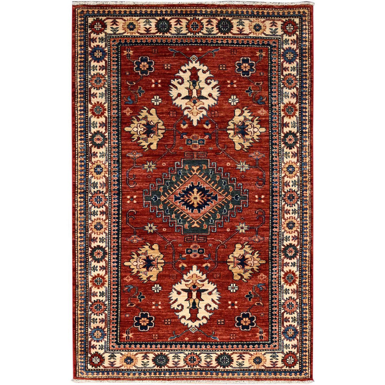 Kazak Wool Hand Knotted Rug Ivory Ivory 3.9X6.3 -O086331