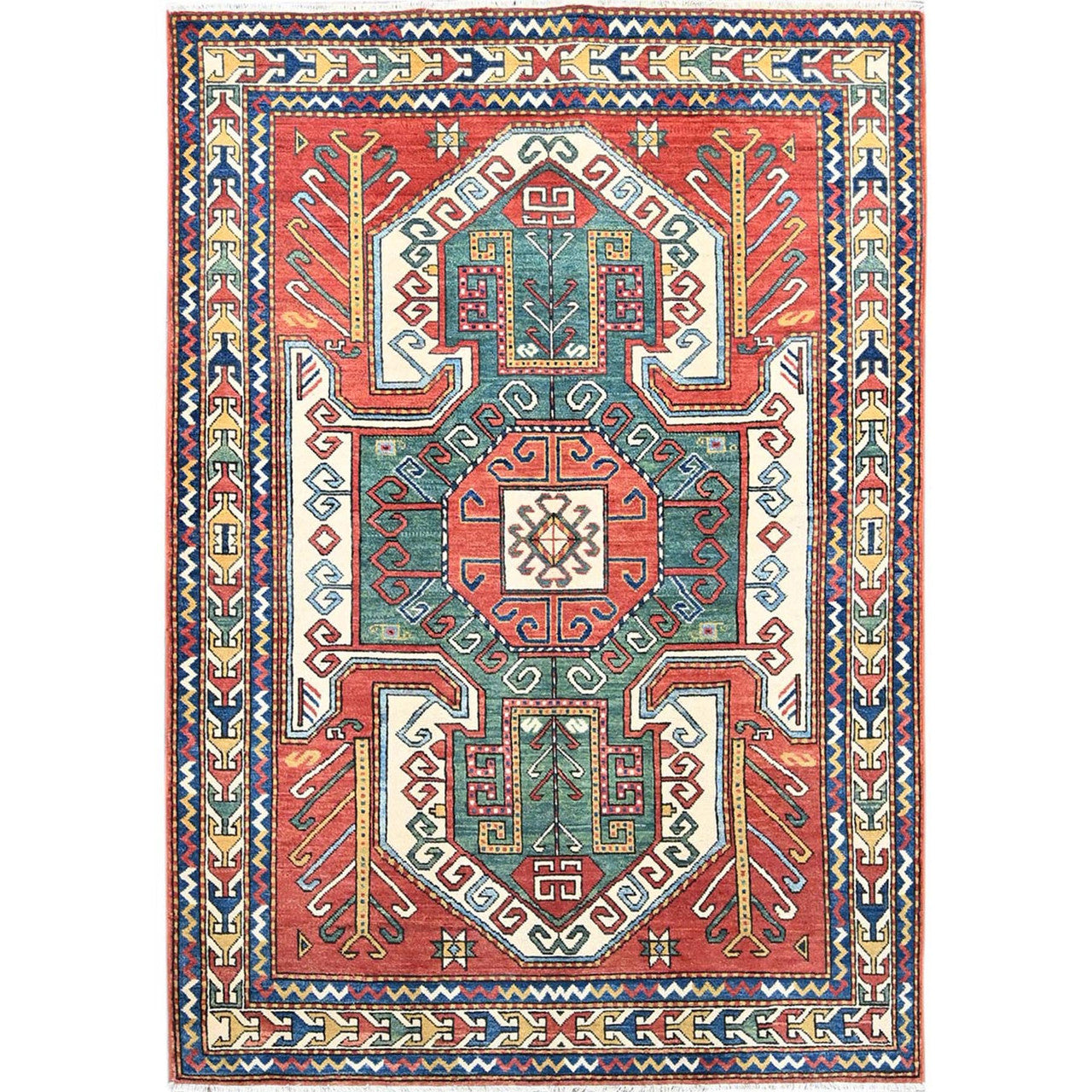 Kazak Wool Hand Knotted Rug Red Ivory 5.1X7.0 -O086810