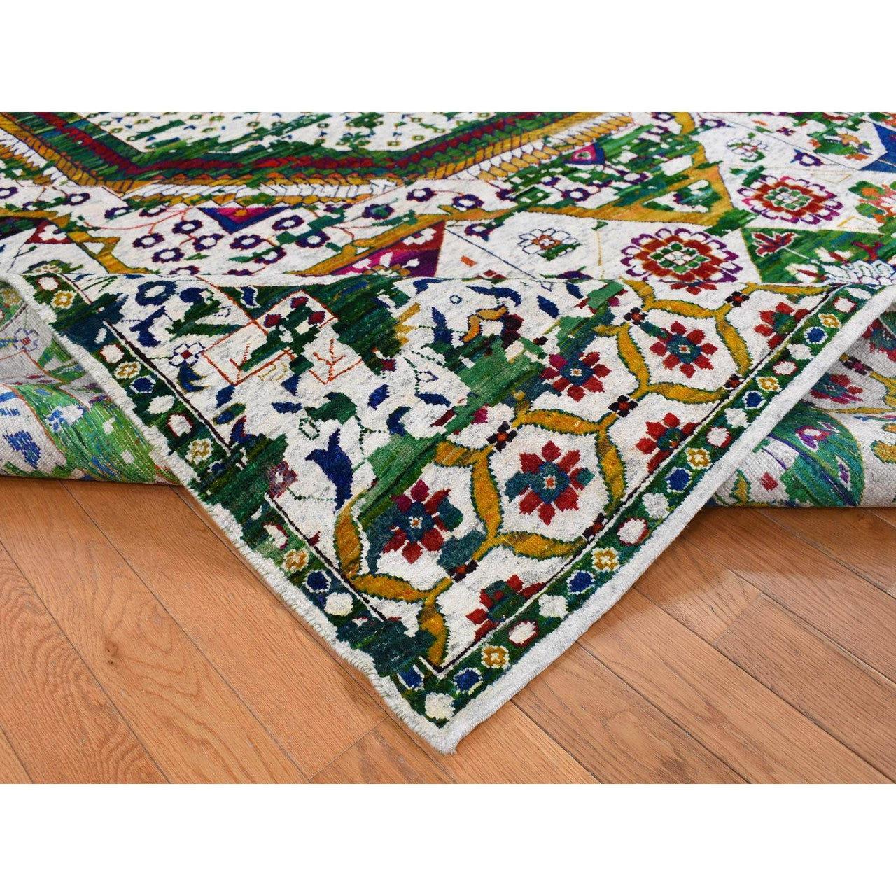 Our entire inventory is made of either hand-knotted or hand-woven rugs. Please Note: Due to packaging the texture of the rug will/may be pressed. This is not a defect and should be unnoticeable after several days. Note: Dear Valued-Customer, please be advised that the package size does not reflect the rugs actual size. Many times it is folded and then rolled in order to meet FedEx and UPS shipping regulations. We have made every effort to display the colors of our rugs as accurately as possible. But the colors may vary depending on your monitor type and the illumination levels of your space.