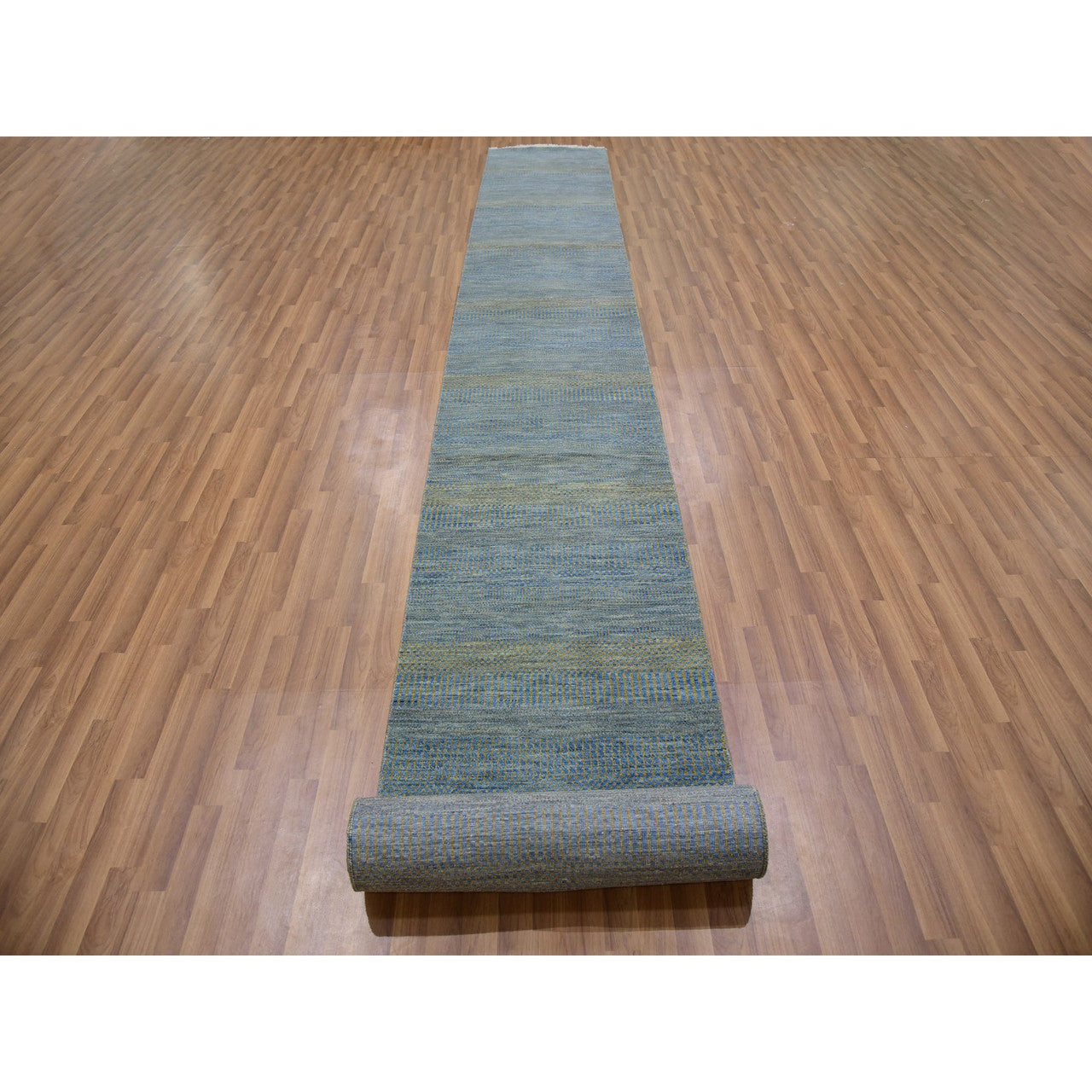 Modern and Contemporary Wool Hand Knotted Rug Blue No Border 2.6X20.0 -O079622