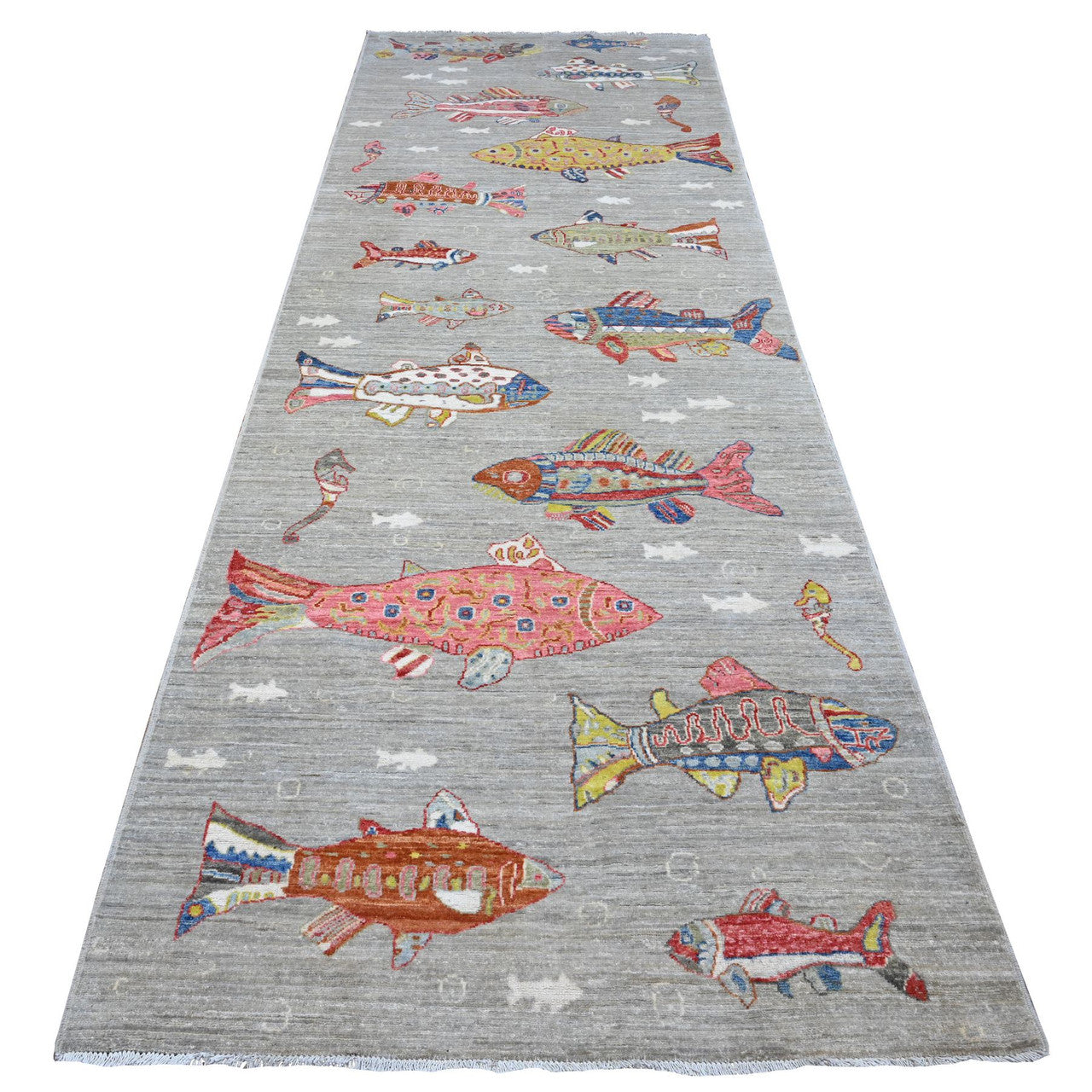 Modern and Contemporary Wool Hand Knotted Rug Grey No Border 4.1X12.0 -O089660