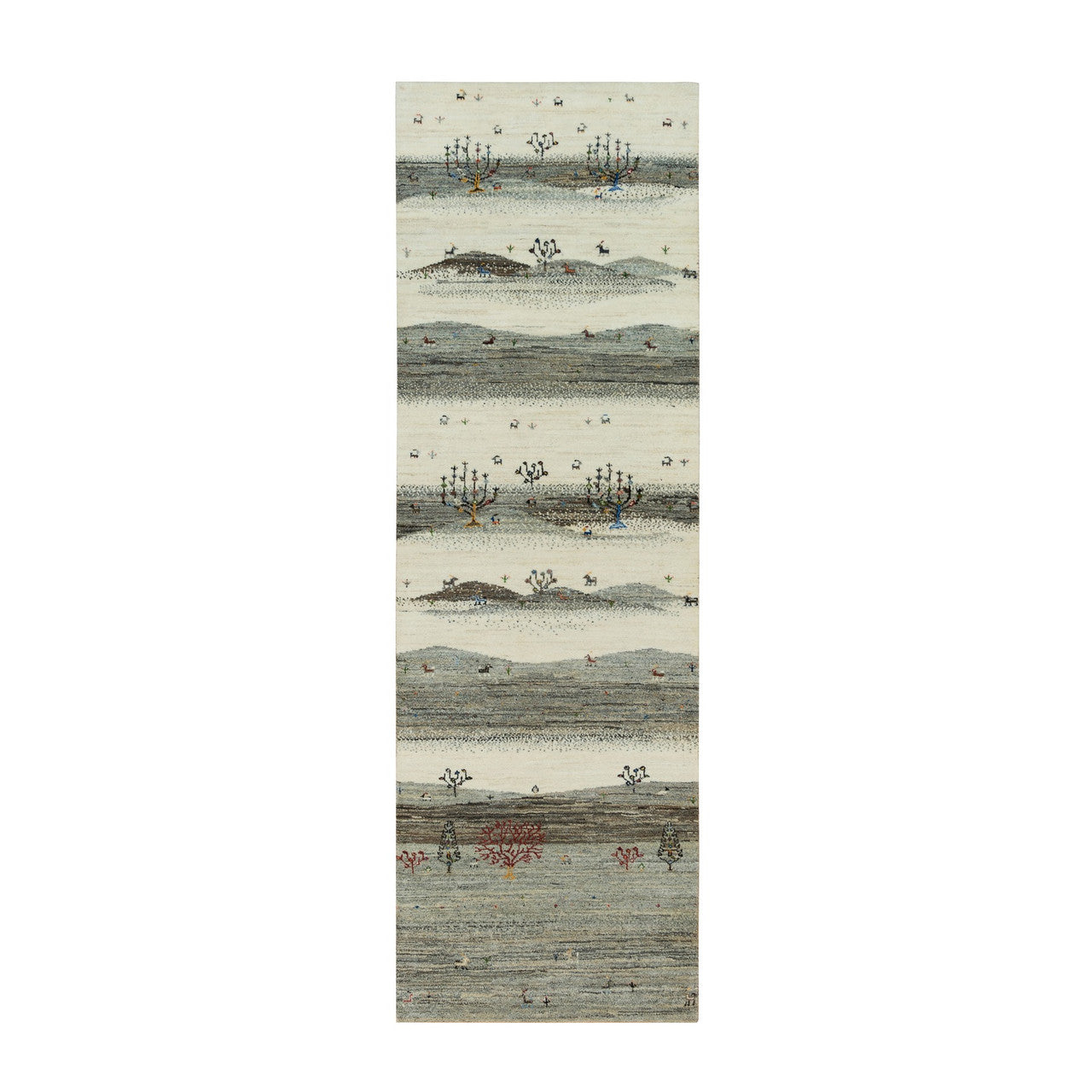 Modern and Contemporary Wool Hand Knotted Rug Ivory No Border 2.7X8.0 -O090155