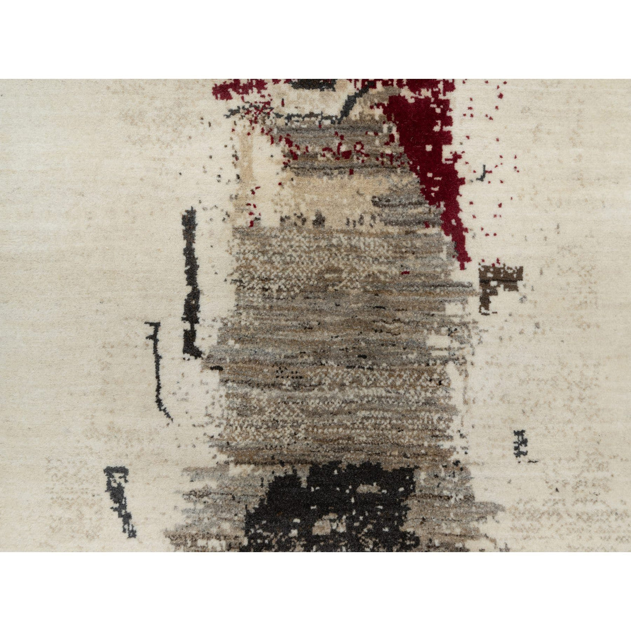 Modern and Contemporary Wool Hand Knotted Rug Ivory No Border 3.0X5.2 -O090769
