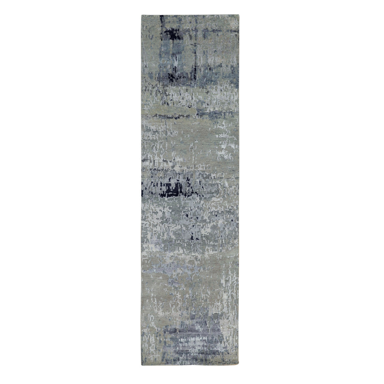 Modern and Contemporary Wool & Silk Hand Knotted Rug Grey No Border 2.7X9.9 -O058874