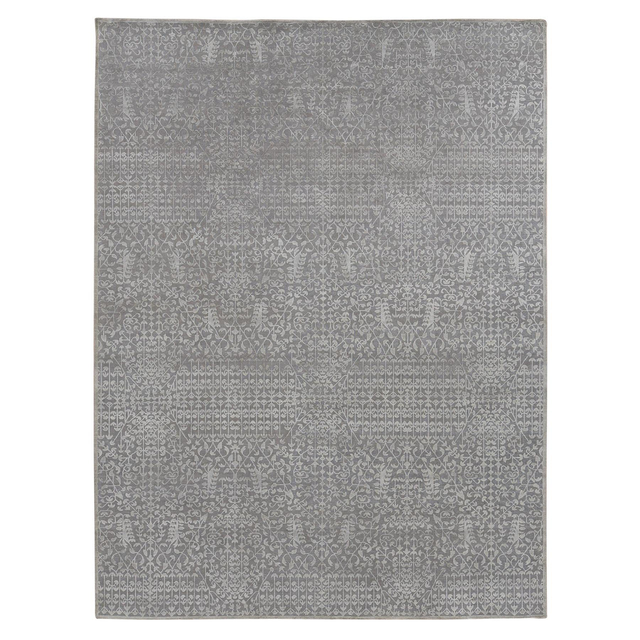 Modern and Contemporary Wool & Silk Hand Knotted Rug Grey No Border 9.0X12.1 -O087104