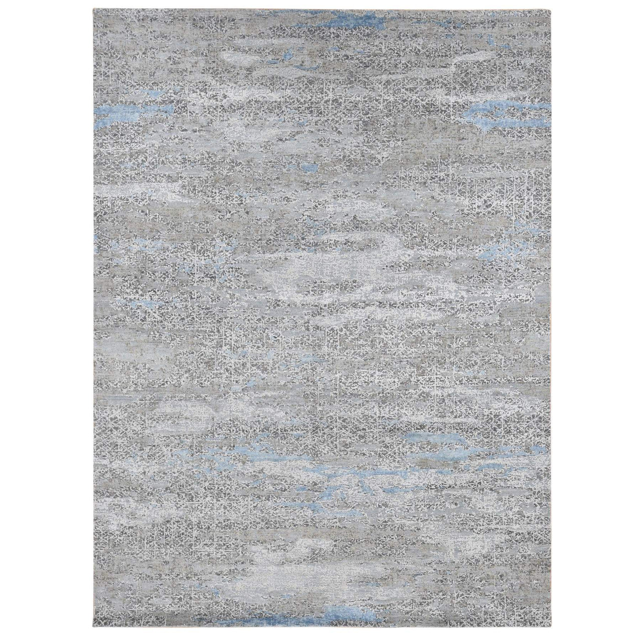 Modern and Contemporary Wool & Silk Hand Knotted Rug Grey No Border 9.0X12.3 -O087703