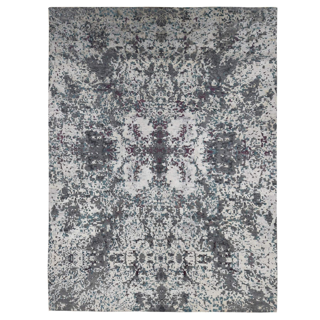 Modern and Contemporary Wool & Silk Hand Knotted Rug Grey No Border 9.10X13.7 -O087086