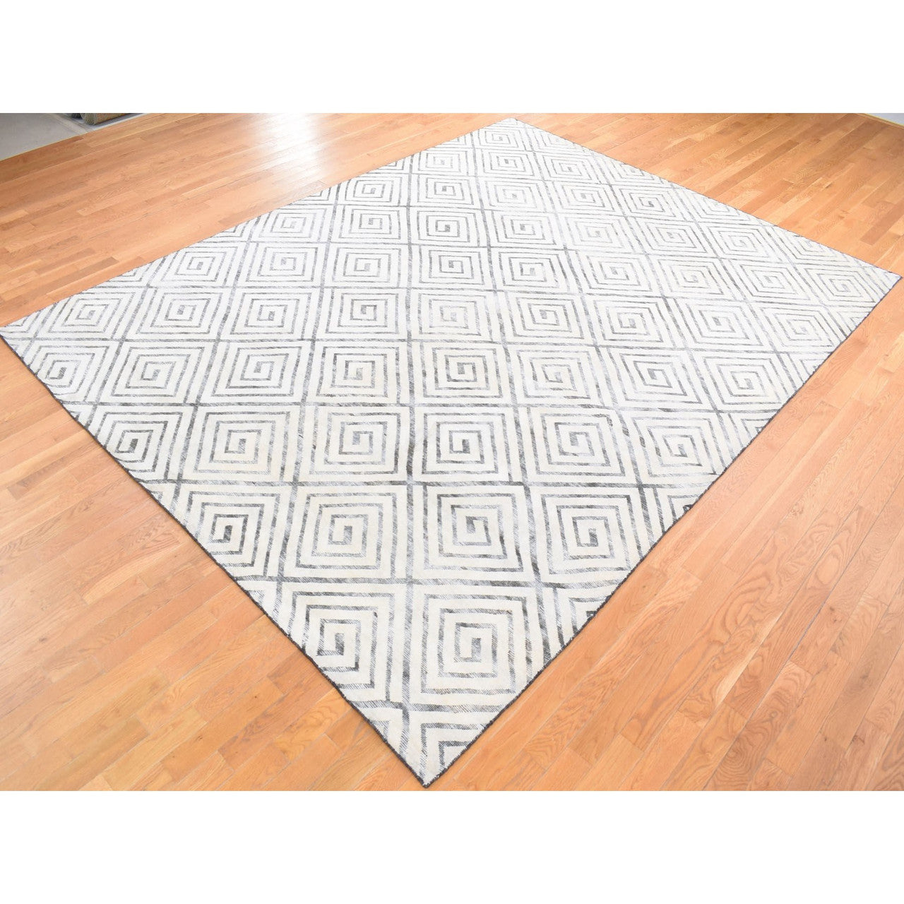 Modern and Contemporary Wool & Silk Hand Knotted Rug Ivory No Border 9.0X12.0 -O080447
