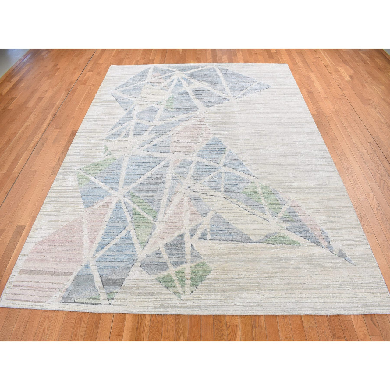 Modern and Contemporary Wool & Silk Hand Knotted Rug Ivory No Border 9.0X12.0 -O087145