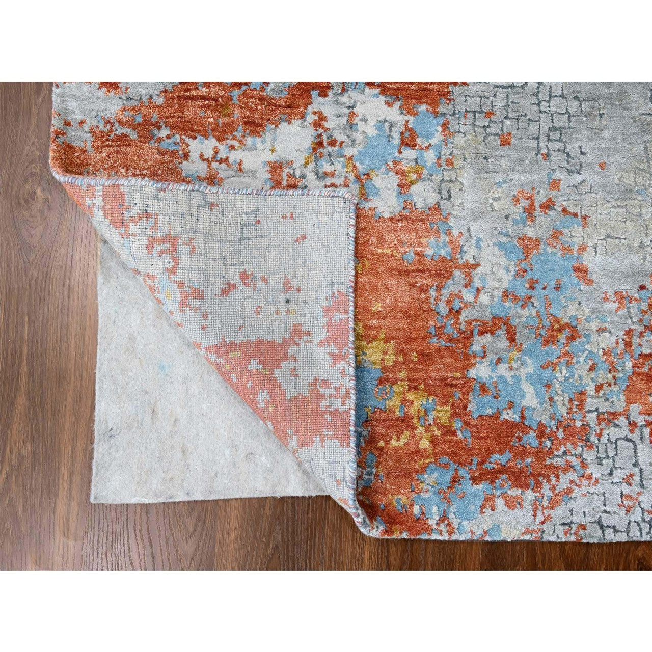 Modern and Contemporary Wool & Silk Hand Knotted Rug Orange No Border 4.0X5.10 -O010013