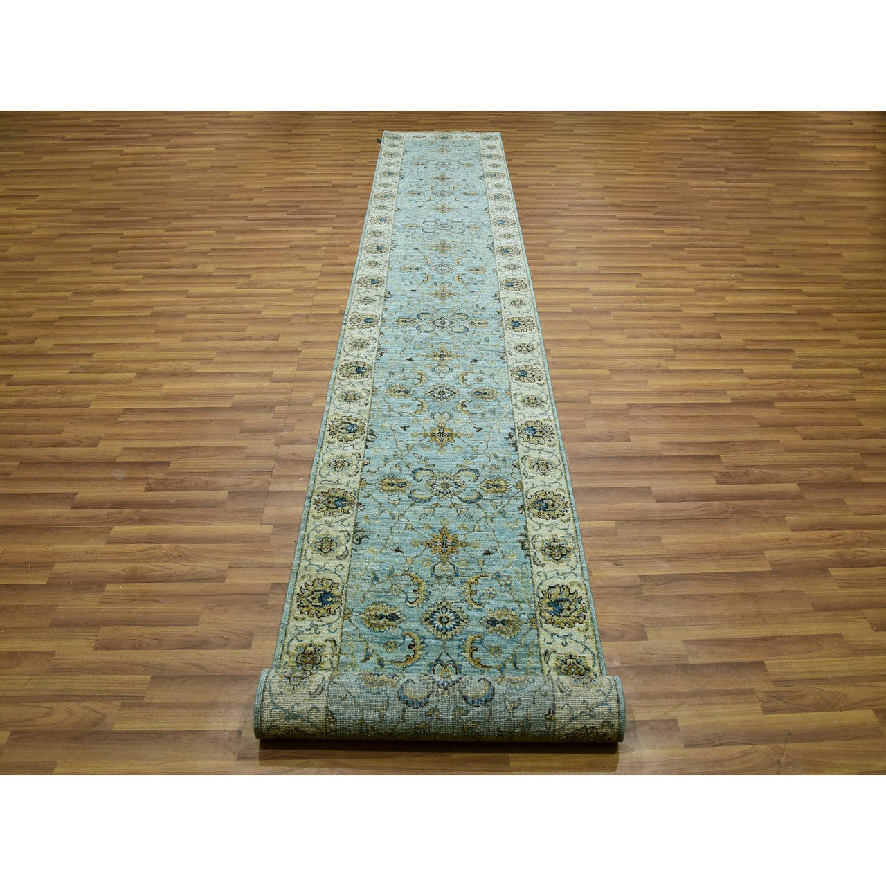 Oushak And Peshawar Wool Hand Knotted Rug Blue Beige 2.7X15.10 -O076034