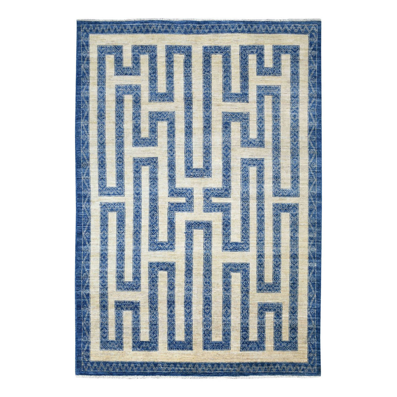 Oushak And Peshawar Wool Hand Knotted Rug Blue Blue 5.10X8.9 -O070310