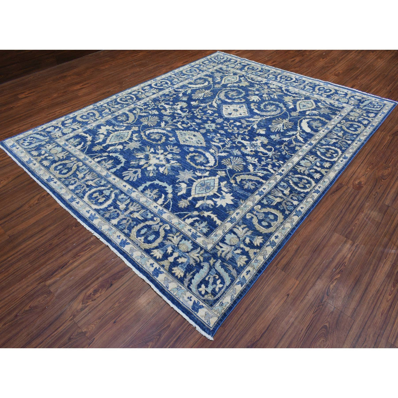 Oushak And Peshawar Wool Hand Knotted Rug Blue Blue 8.0X10.0 -O072689