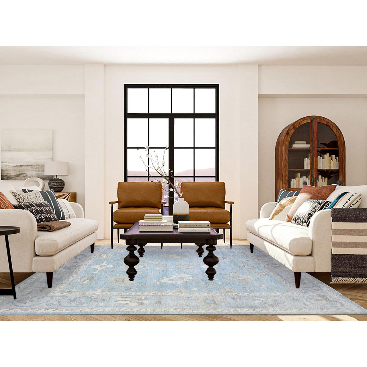 Oushak And Peshawar Wool Hand Knotted Rug Blue Gray 8.1X9.8 -O074014
