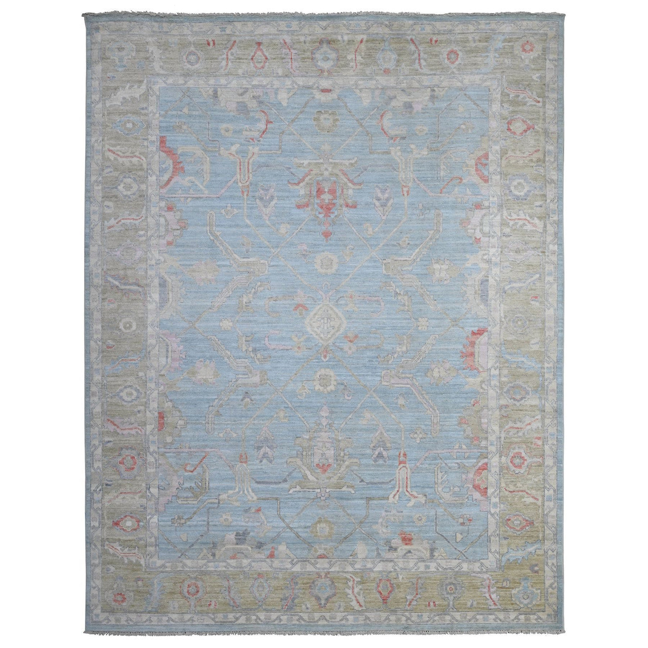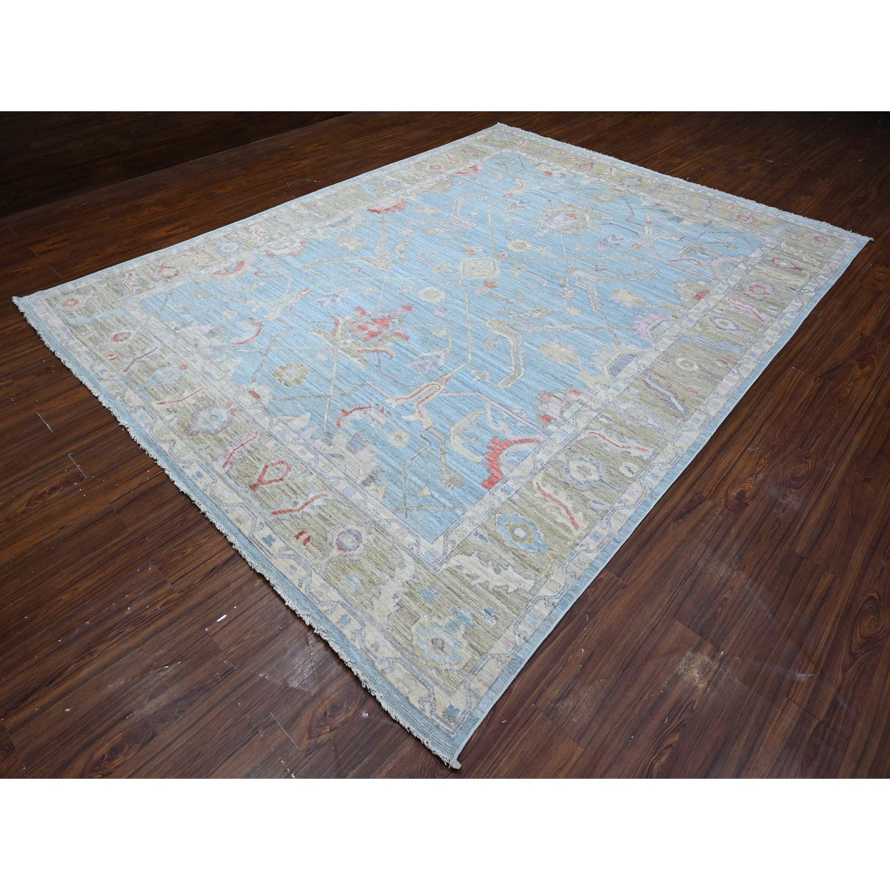 Oushak And Peshawar Wool Hand Knotted Rug Blue Green 8.11X11.7 -O088856