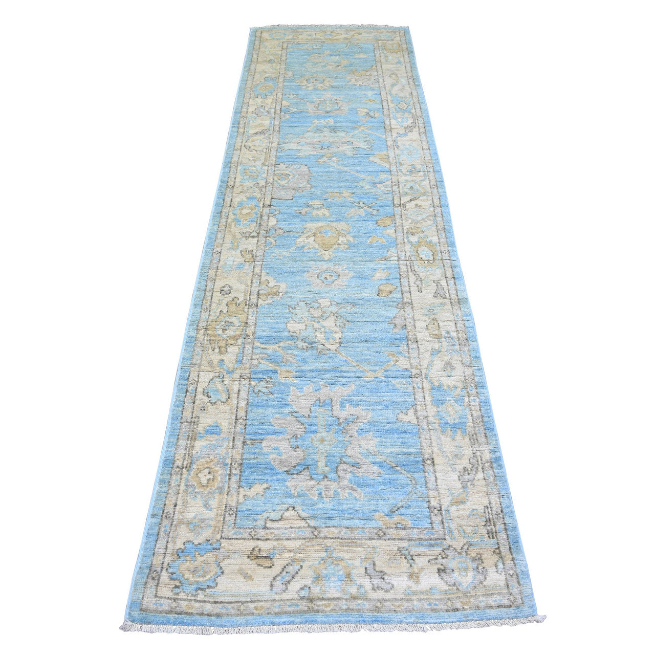 Oushak And Peshawar Wool Hand Knotted Rug Blue Ivory 2.9X9.9 -O073878