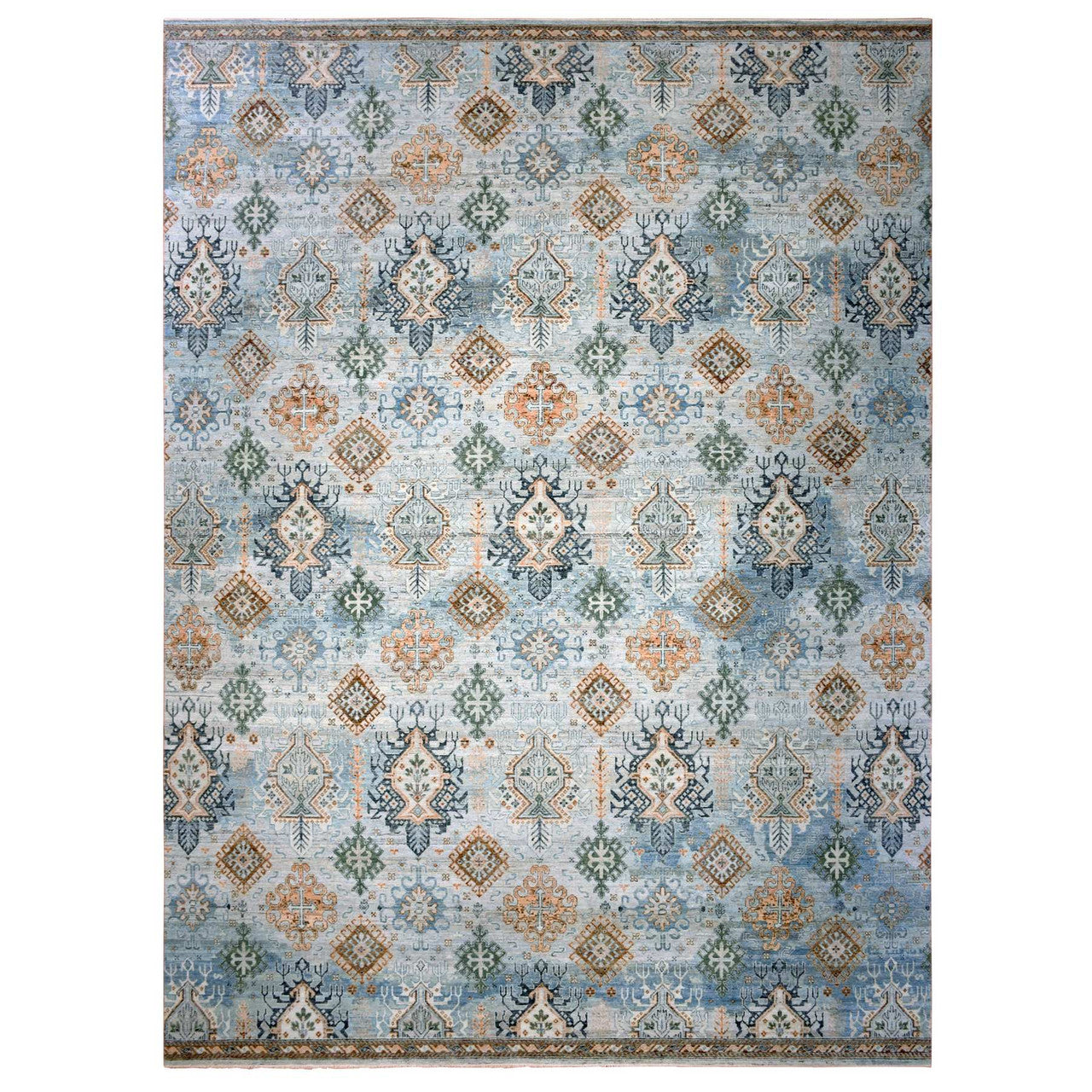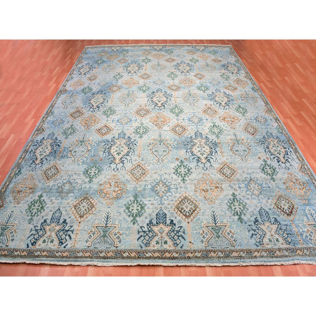 Oushak And Peshawar Wool Hand Knotted Rug Blue No Border 12.0X15.2 -O075317