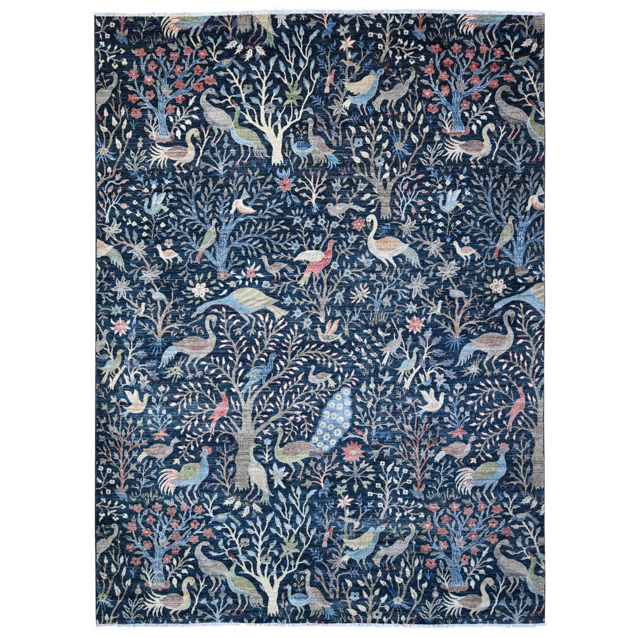 Oushak And Peshawar Wool Hand Knotted Rug Blue No Border 8.10X11.10 -O089134