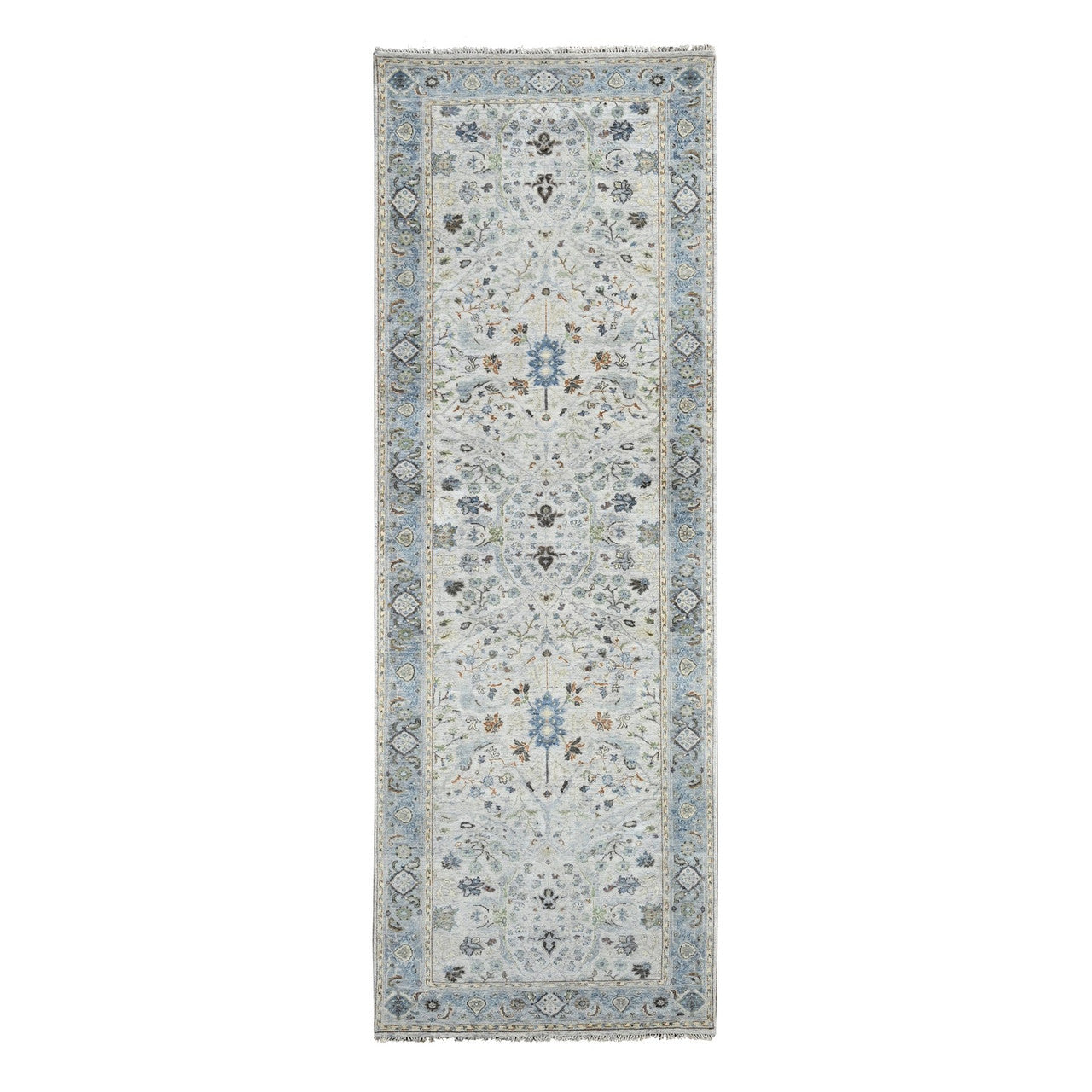 Oushak And Peshawar Wool Hand Knotted Rug Grey Gray 4.0X11.10 -O084756