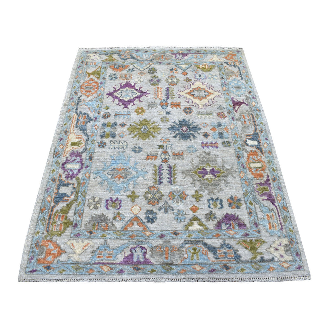 Oushak And Peshawar Wool Hand Knotted Rug Grey Gray 4.1X5.10 -O056109