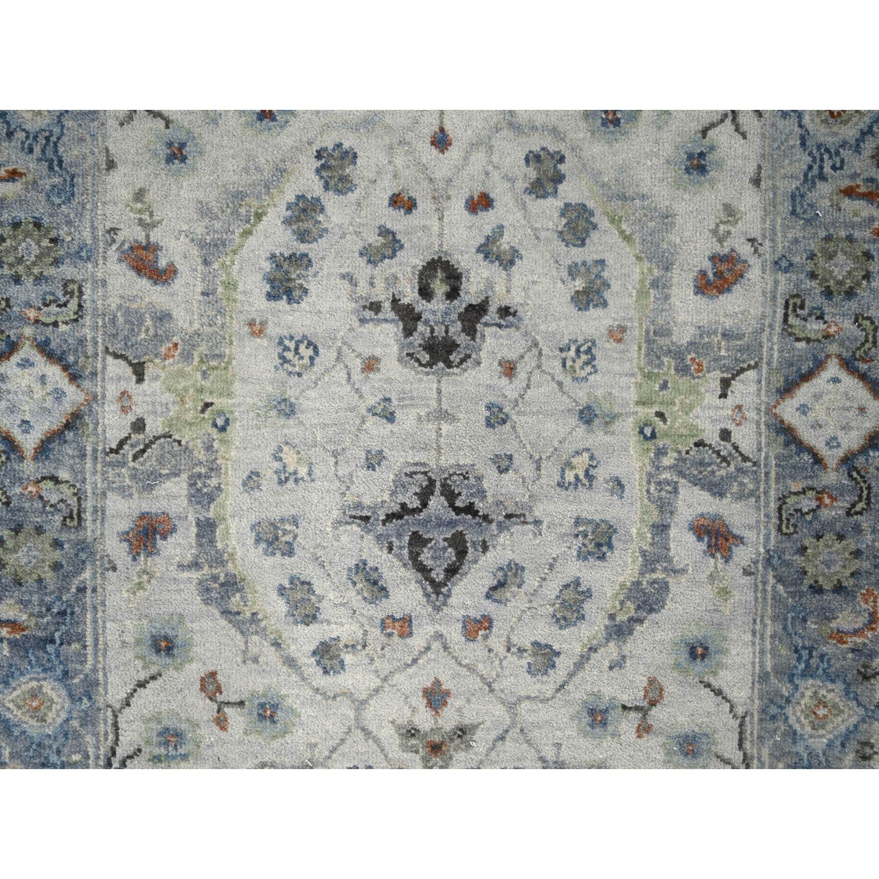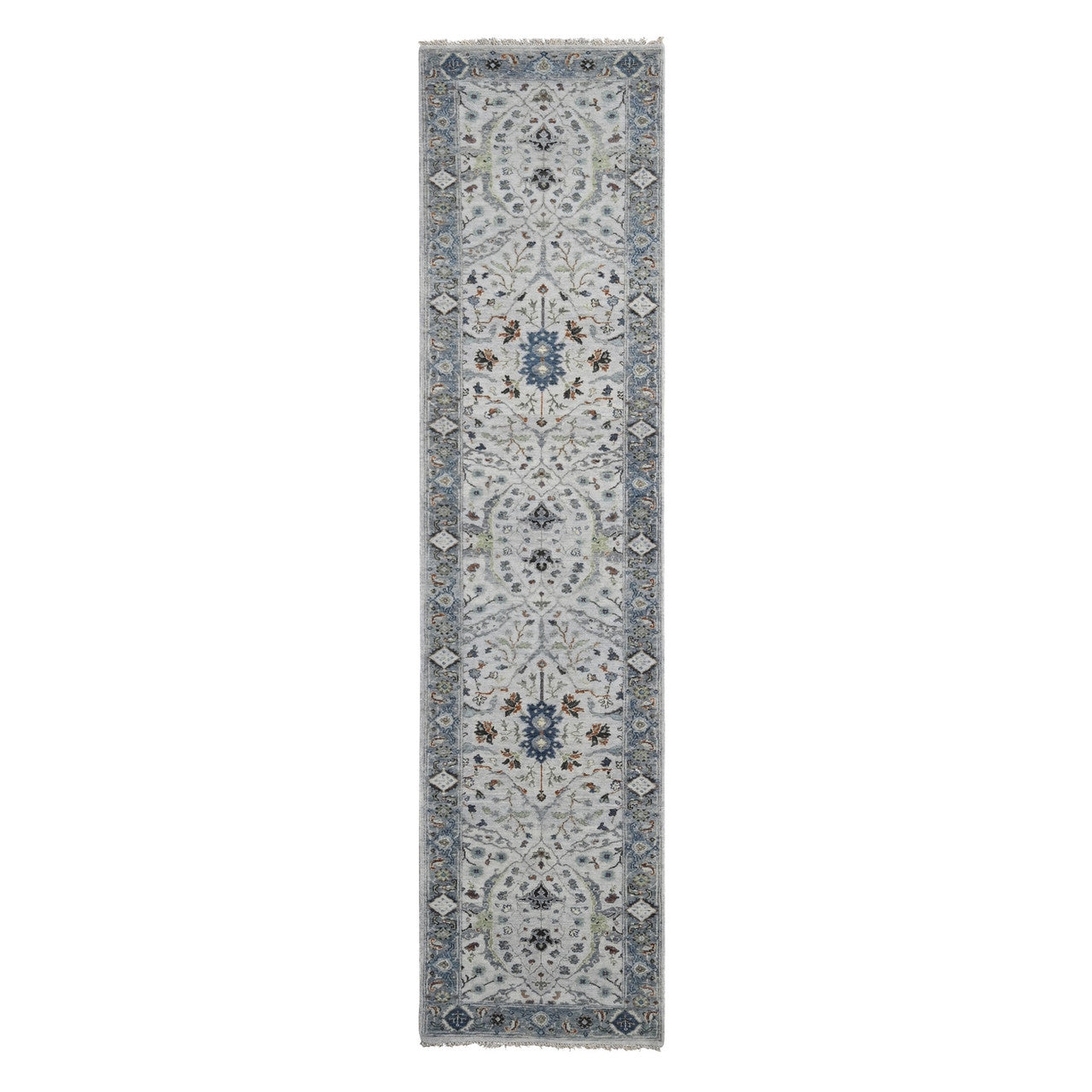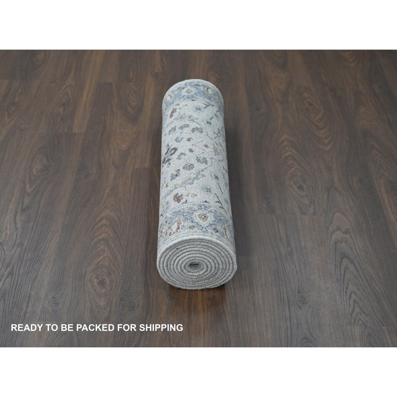 Oushak And Peshawar Wool Hand Knotted Rug Grey Silver Blue 2.7X11.9 -O084017