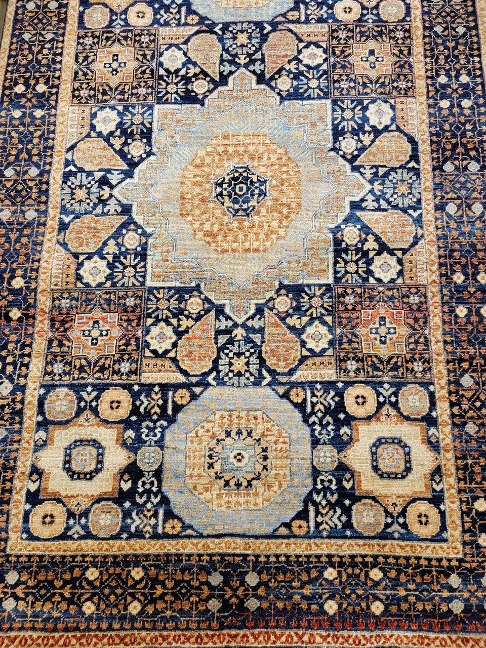 Our entire inventory is made of either hand-knotted or hand-woven rugs. Please Note: Due to packaging the texture of the rug will/may be pressed. This is not a defect and should be unnoticeable after several days. Note: Dear Valued-Customer, please be advised that the package size does not reflect the rugs actual size. Many times it is folded and then rolled in order to meet FedEx and UPS shipping regulations. We have made every effort to display the colors of our rugs as accurately as possible. But the colors may vary depending on your monitor type and the illumination levels of your space.