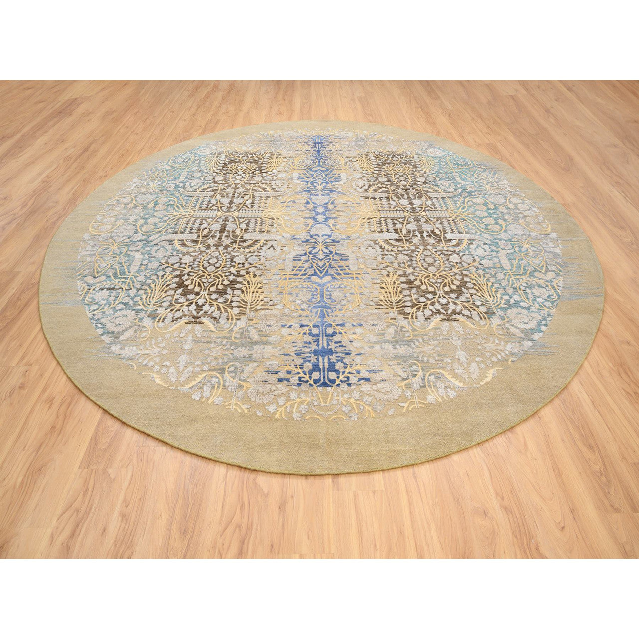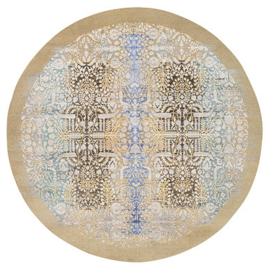 Transitional Wool & Silk Hand Knotted Rug Brown Brown 11.10X11.10 -O064438
