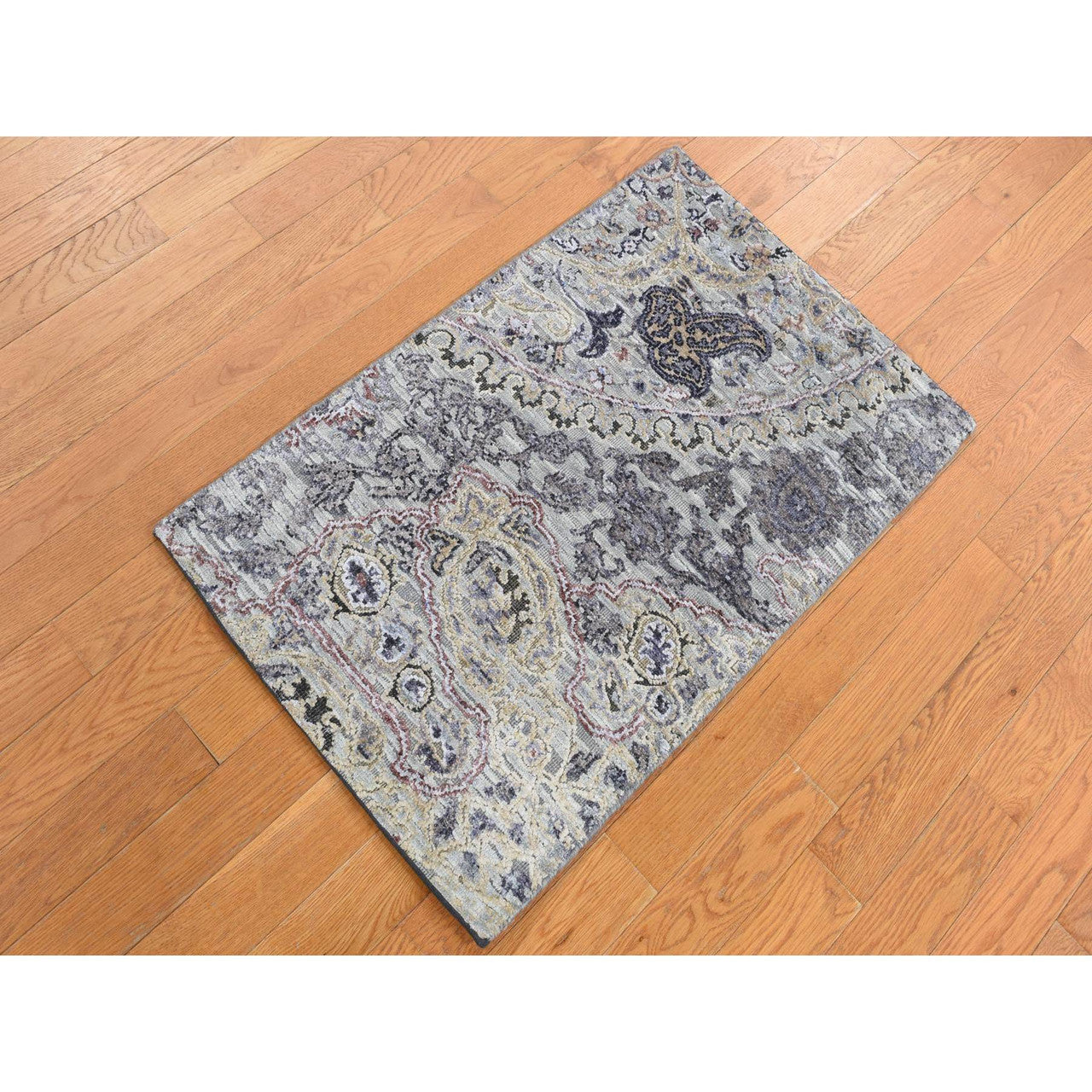 Transitional Wool & Silk Hand Knotted Rug Grey No Border 2.0X3.1 -O087782