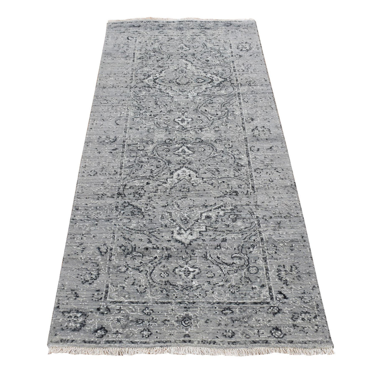 Transitional Wool & Silk Hand Knotted Rug Grey No Border 2.6X6.0 -O087331