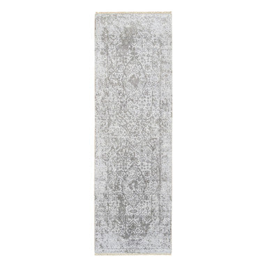 Transitional Wool & Silk Hand Knotted Rug Grey No Border 2.6X8.0 -O064600