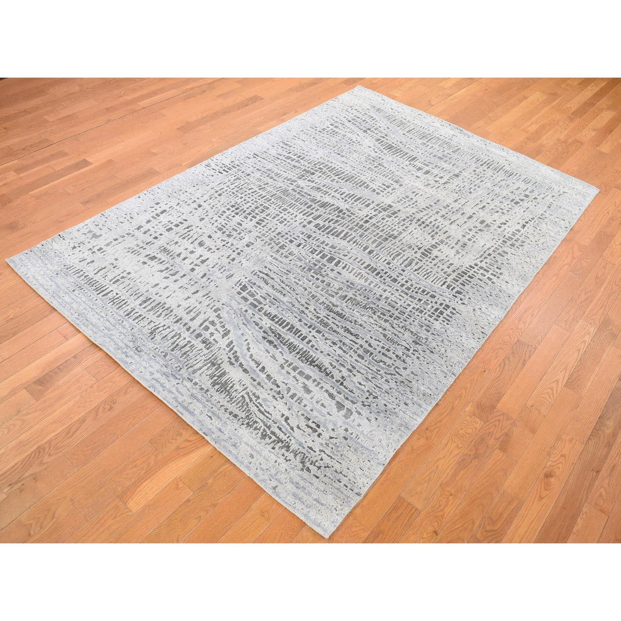 Transitional Wool & Silk Hand Knotted Rug Grey No Border 6.0X9.0 -O080096