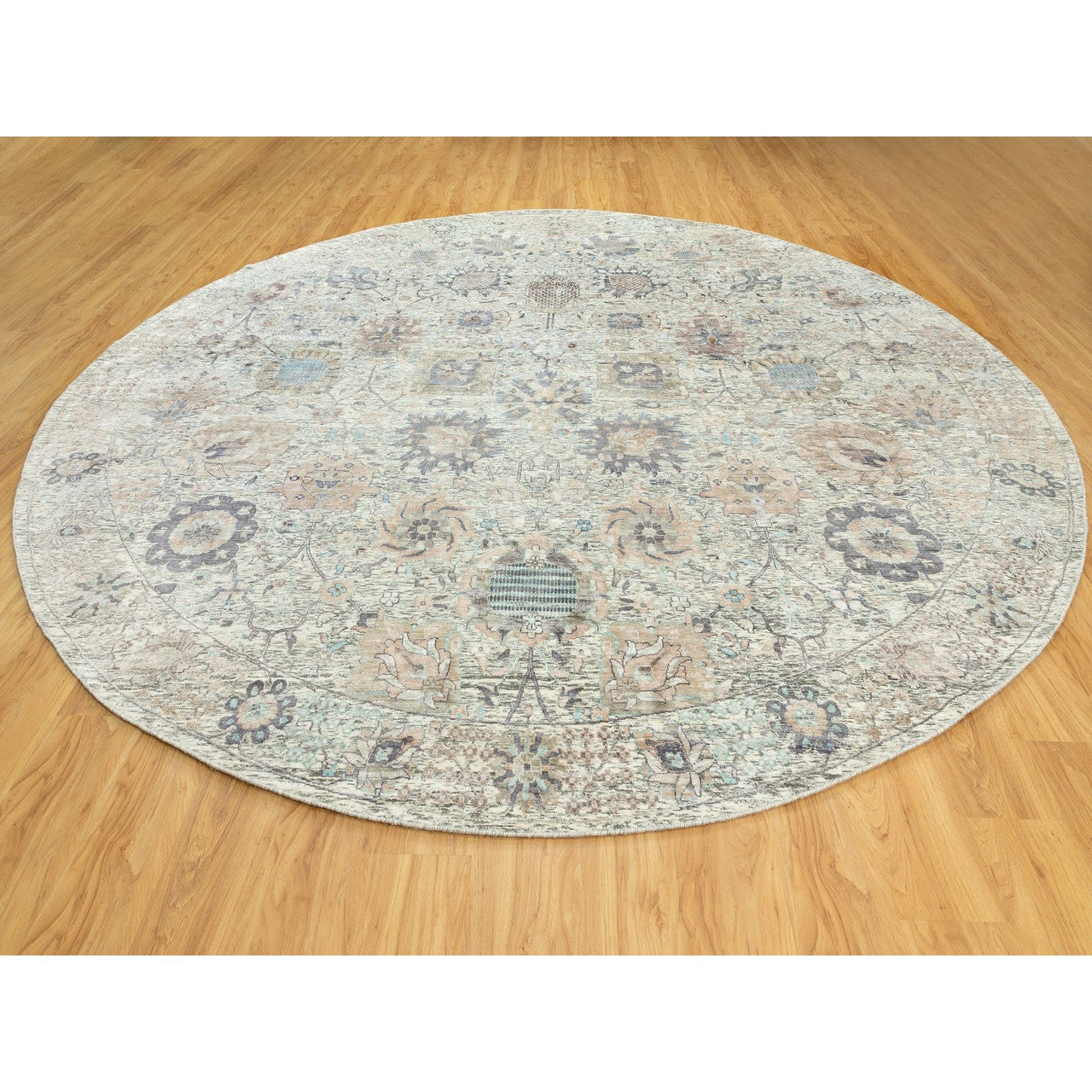 Transitional Wool & Silk Hand Knotted Rug Ivory No Border 11.10X11.10 -O058979
