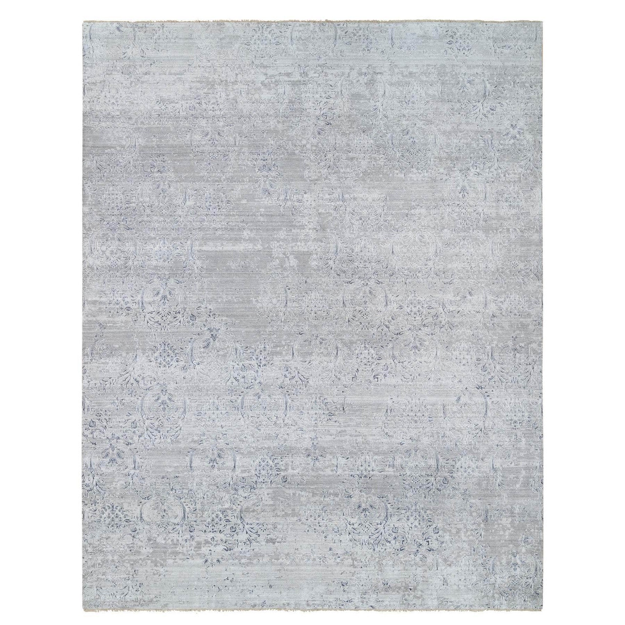 Transitional Wool & Silk Hand Knotted Rug Ivory No Border 11.9X15.0 -O065042