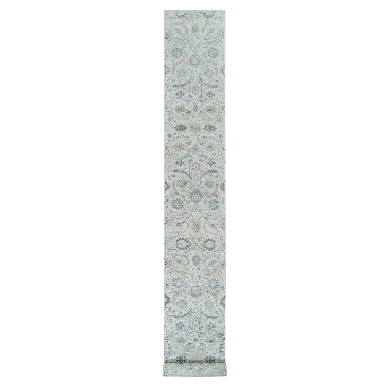 Transitional Wool & Silk Hand Knotted Rug Ivory No Border 2.6X20.0 -O064891