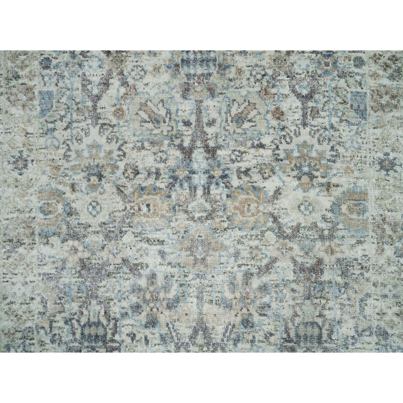 Transitional Wool & Silk Hand Knotted Rug Ivory No Border 2.6X9.10 -O090243