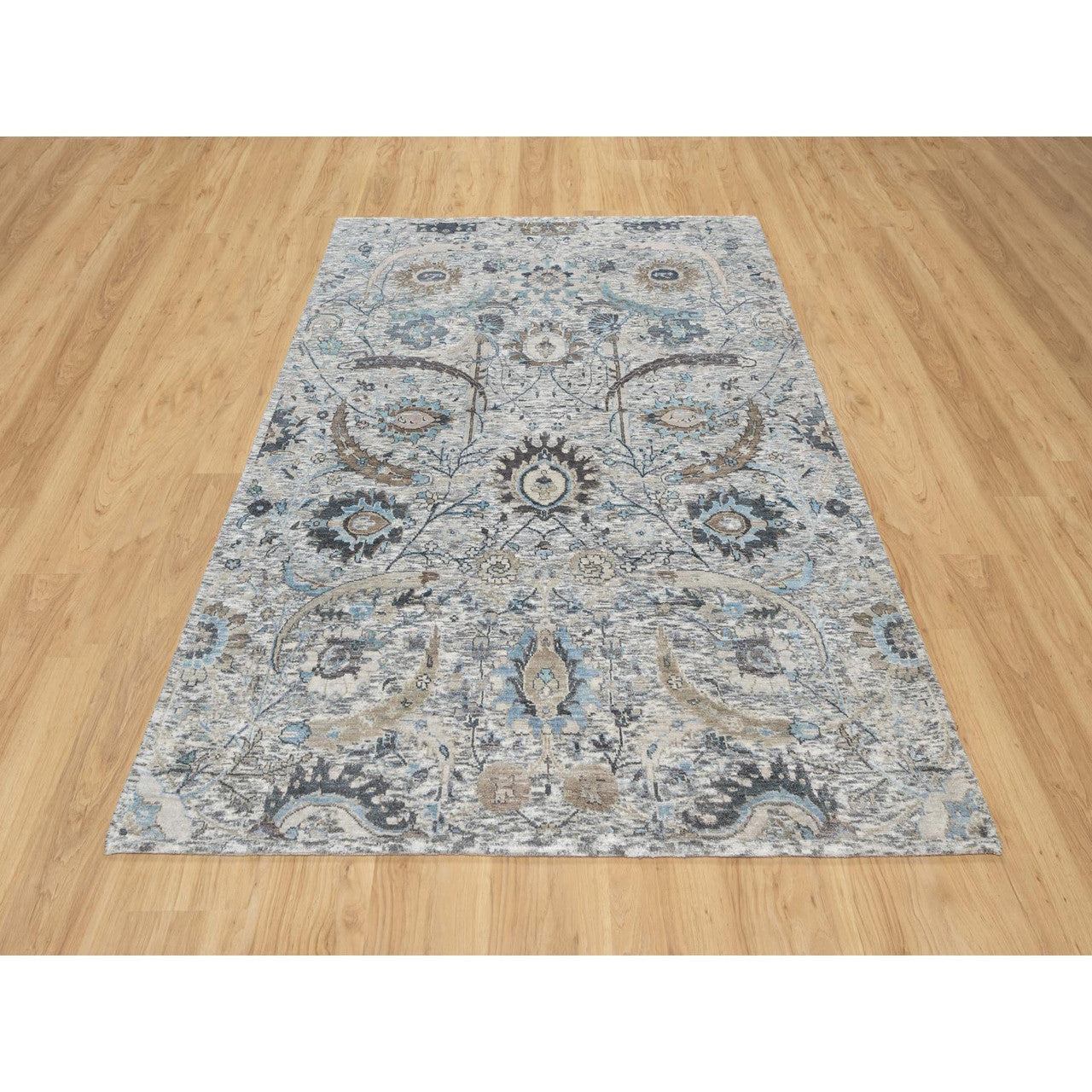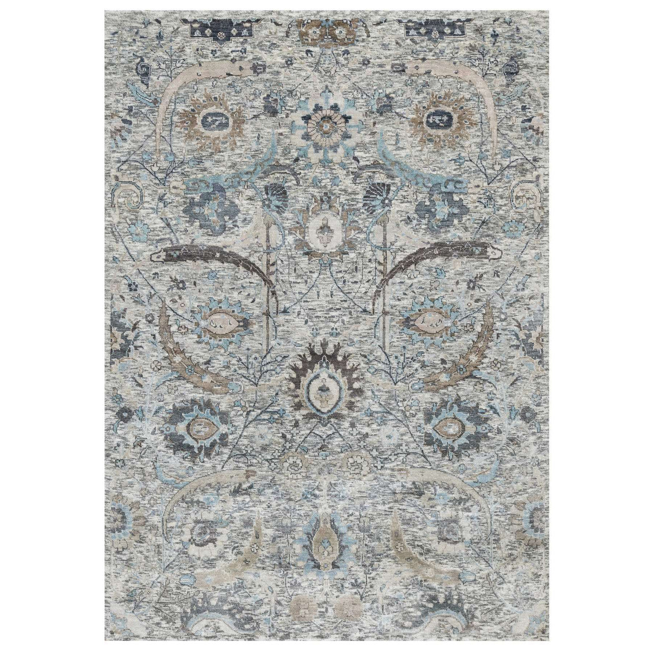 Transitional Wool & Silk Hand Knotted Rug Ivory No Border 5.0X7.1 -O090969